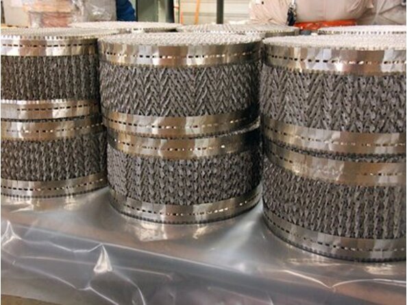 金屬絲網(wǎng)波紋填料適用于難分離物系、熱敏物系及高純度產(chǎn)品的精餾。另外還可根據(jù)工藝的特殊要求加工非常規(guī)的產(chǎn)品。